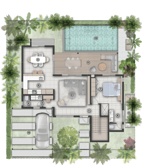 Abialo estate design philosophy embodies the indoor and outdoor living style. Internal spaces are flow seamlessly with the outdoor terrace, pool area and gardens.