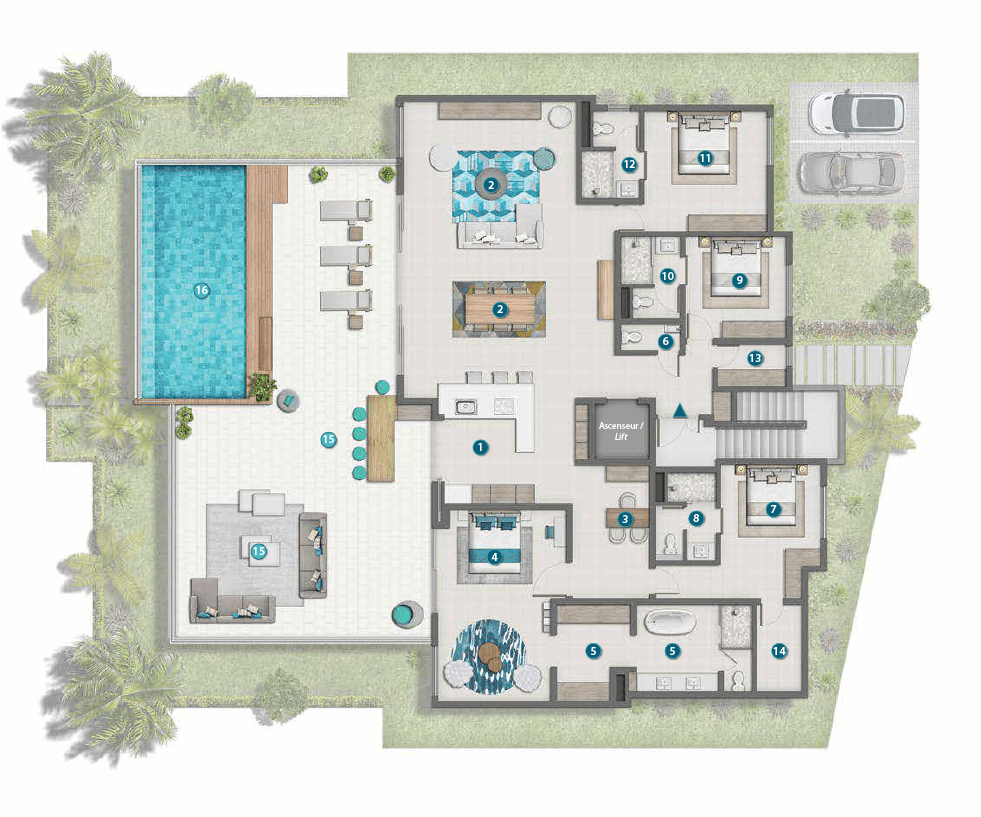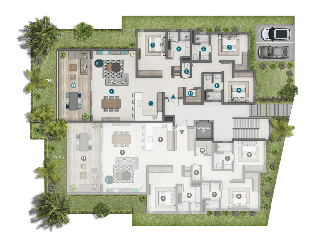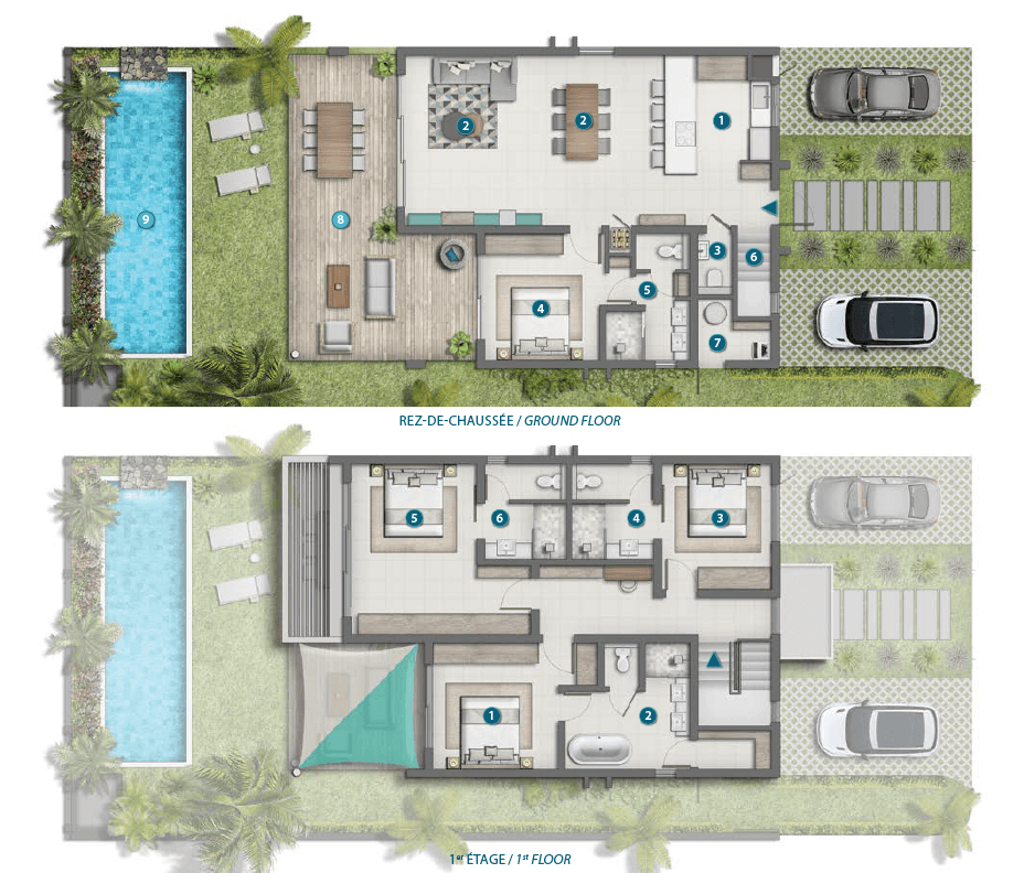 These four-bedroom garden houses are generously proportioned on two levels. A luxuriant garden where stands a mesmerising swimming pool, wraps each home. These exceptional properties are set in a great location with state-of-the-art features optimising comfort and aesthetic.